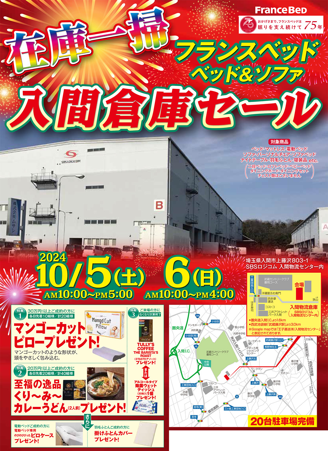 | 開催会場 | フランスベッド入間物流倉庫内 3階特設会場 |