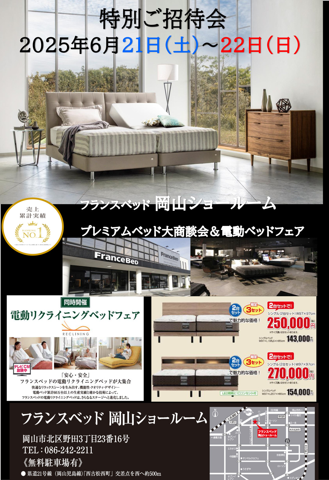 高品質フランスベッドをフランスベッド岡山ショールーム限定特別価格でご提供! |