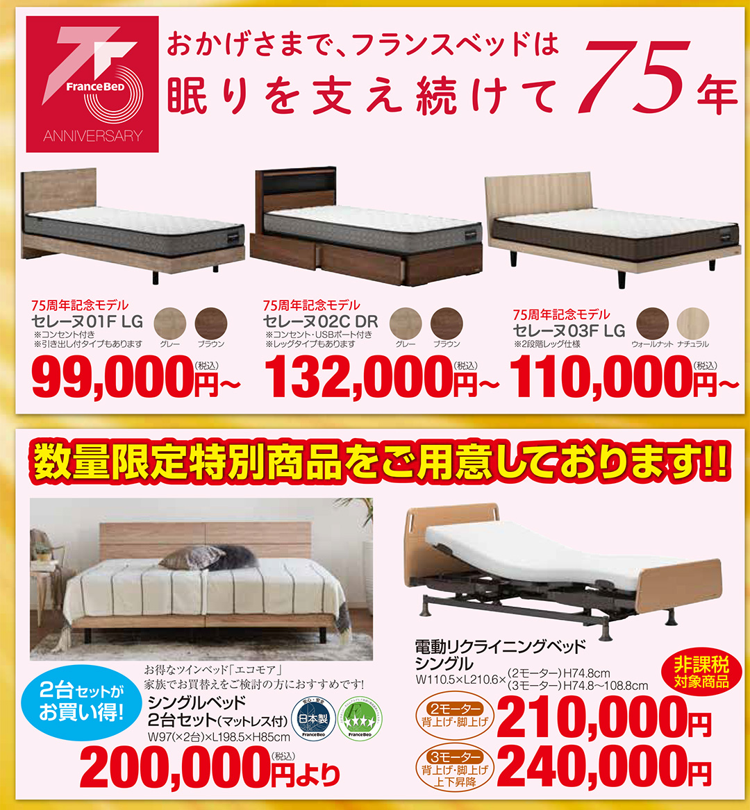 高品質フランスベッドを、特別イベントならではのプレミアム特別価格でご提供! |