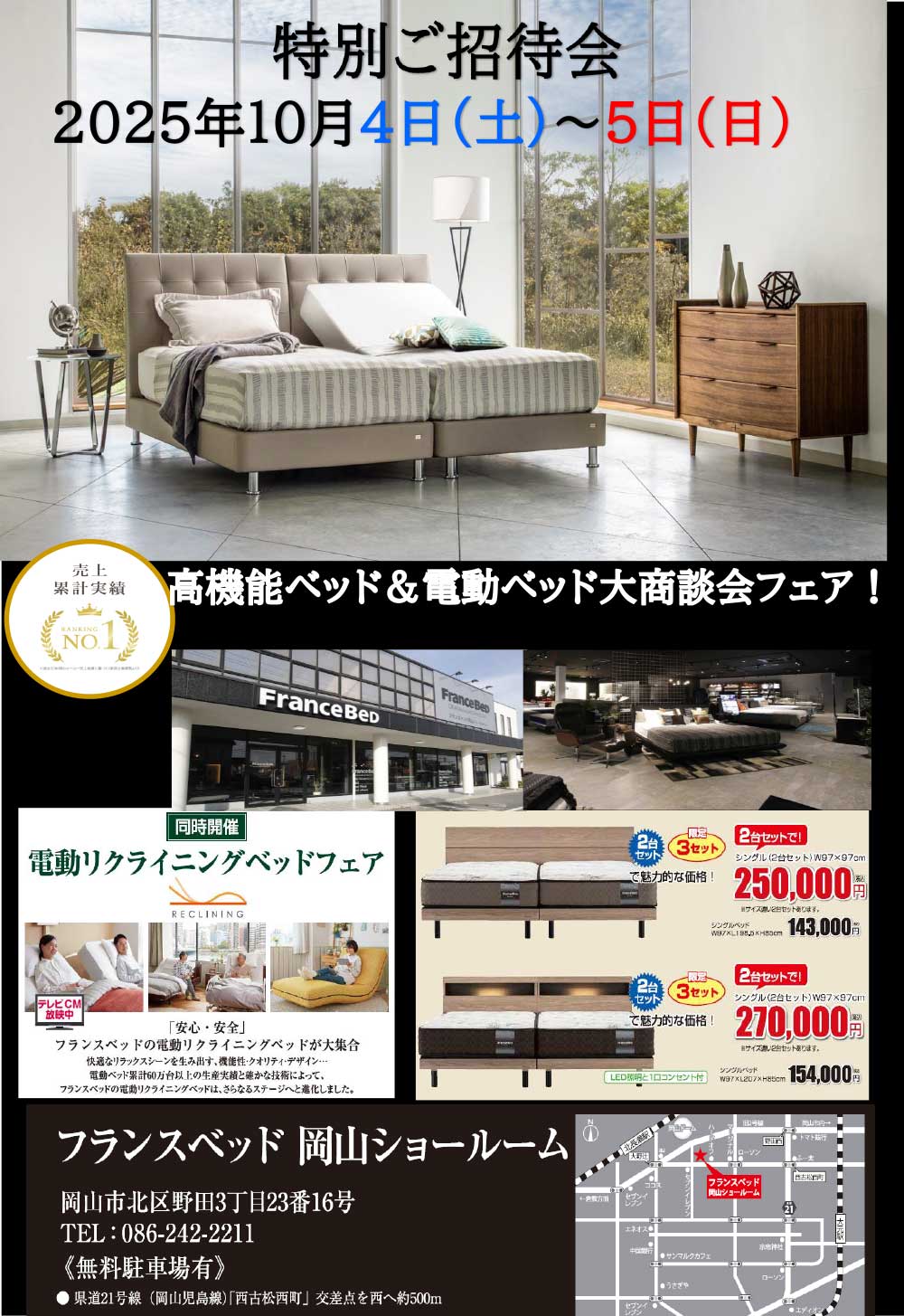 高品質フランスベッドをフランスベッド岡山ショールーム限定特別価格でご提供! |