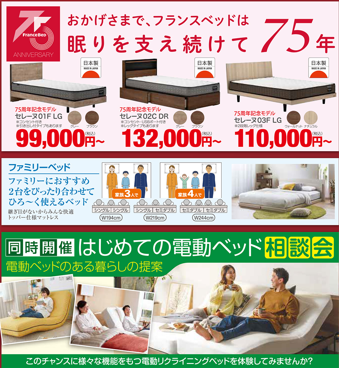高品質フランスベッドを、特別イベントならではのプレミアム特別価格でご提供! |