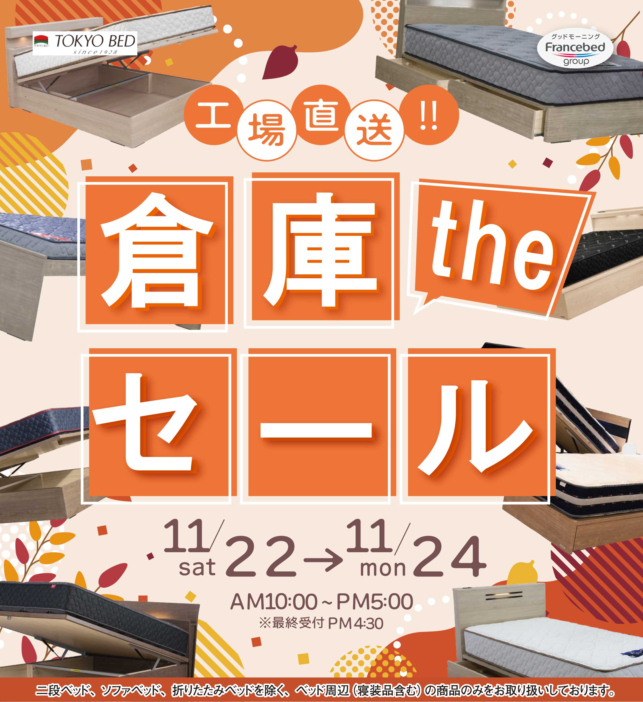 高品質ベッドを、東京ベッドの工場バーゲン特別イベントならではの大特価でご提供! 展示品が無くてもご優待価格でご案内! |