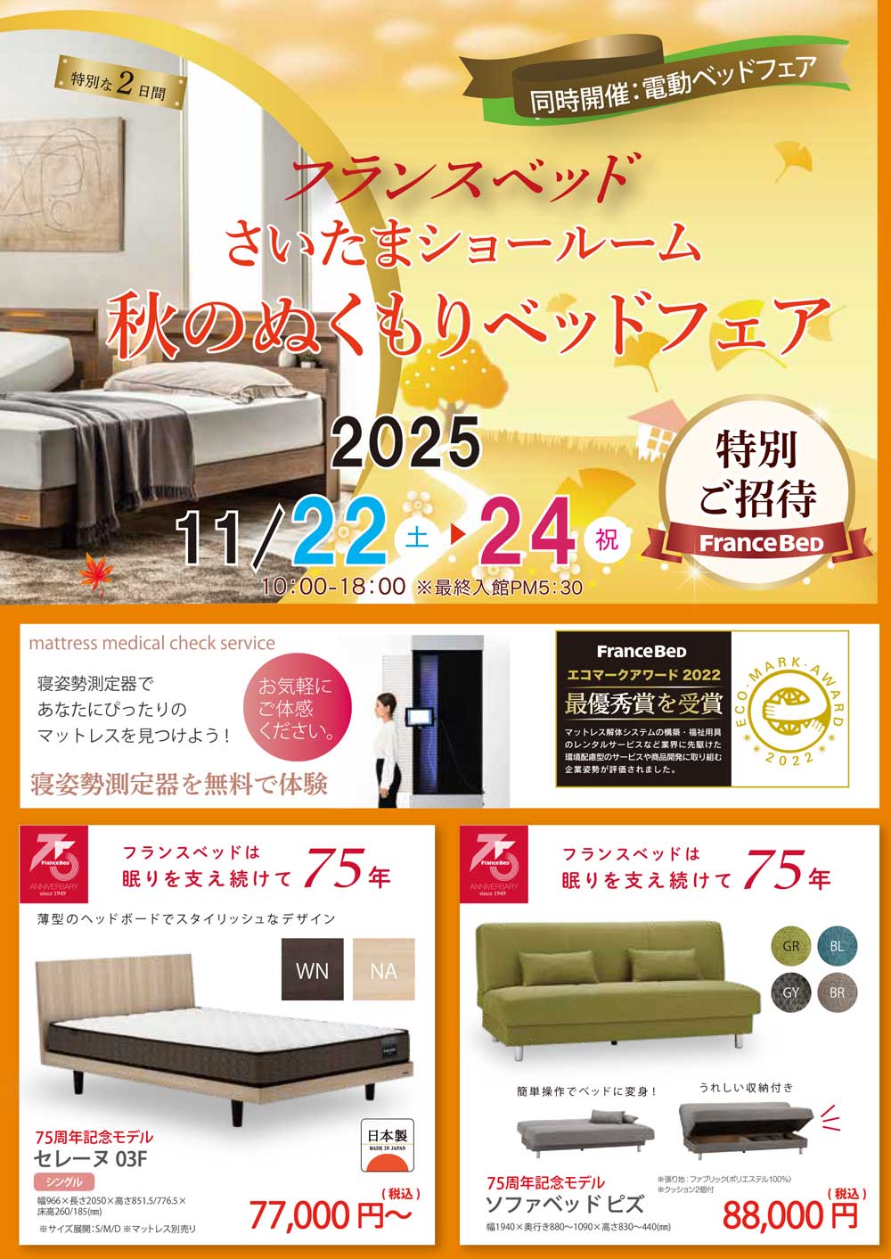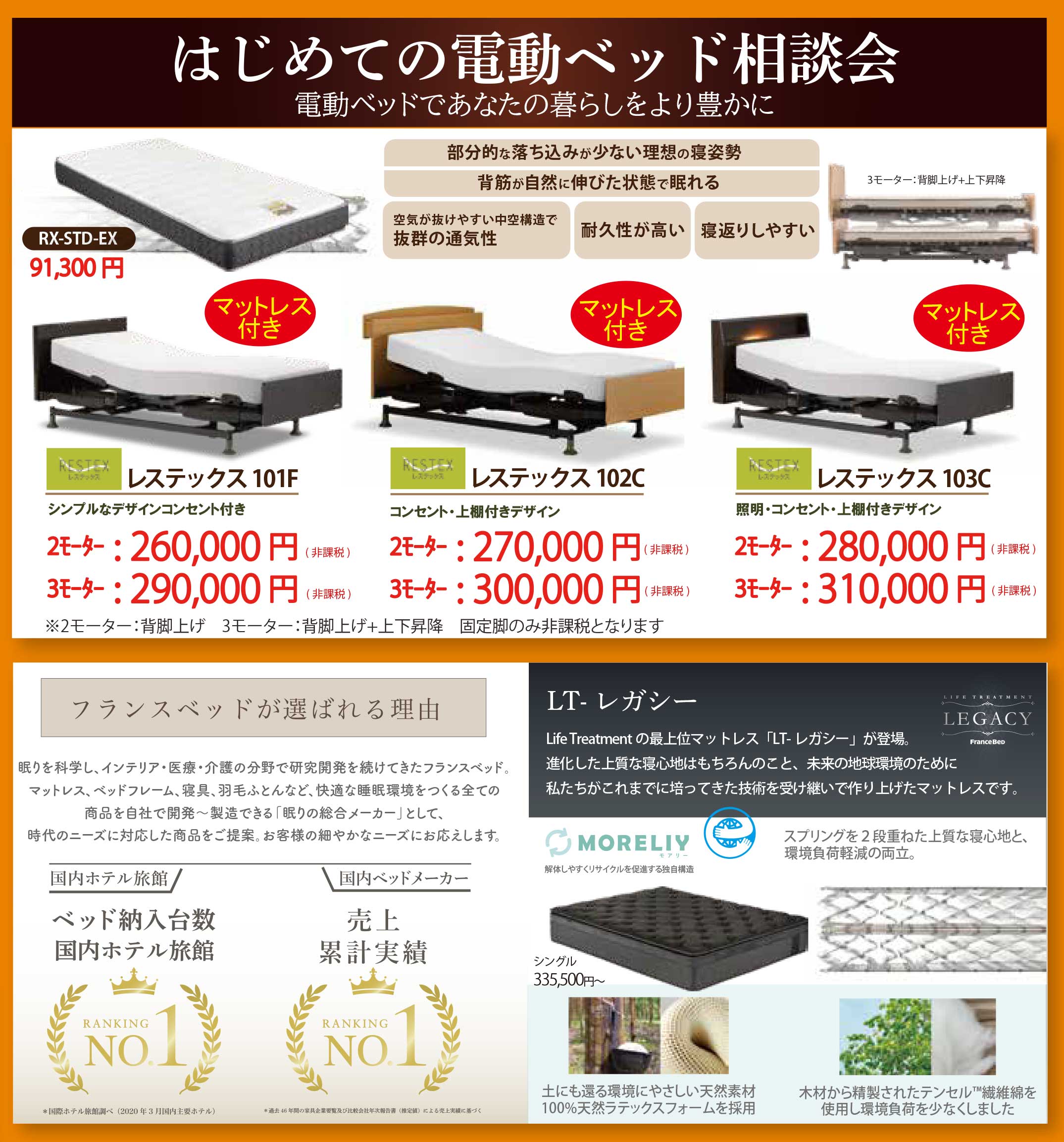 安心・安全・静音、フランスベッドの『電動リクライニングベッド』もフェア特別価格! |