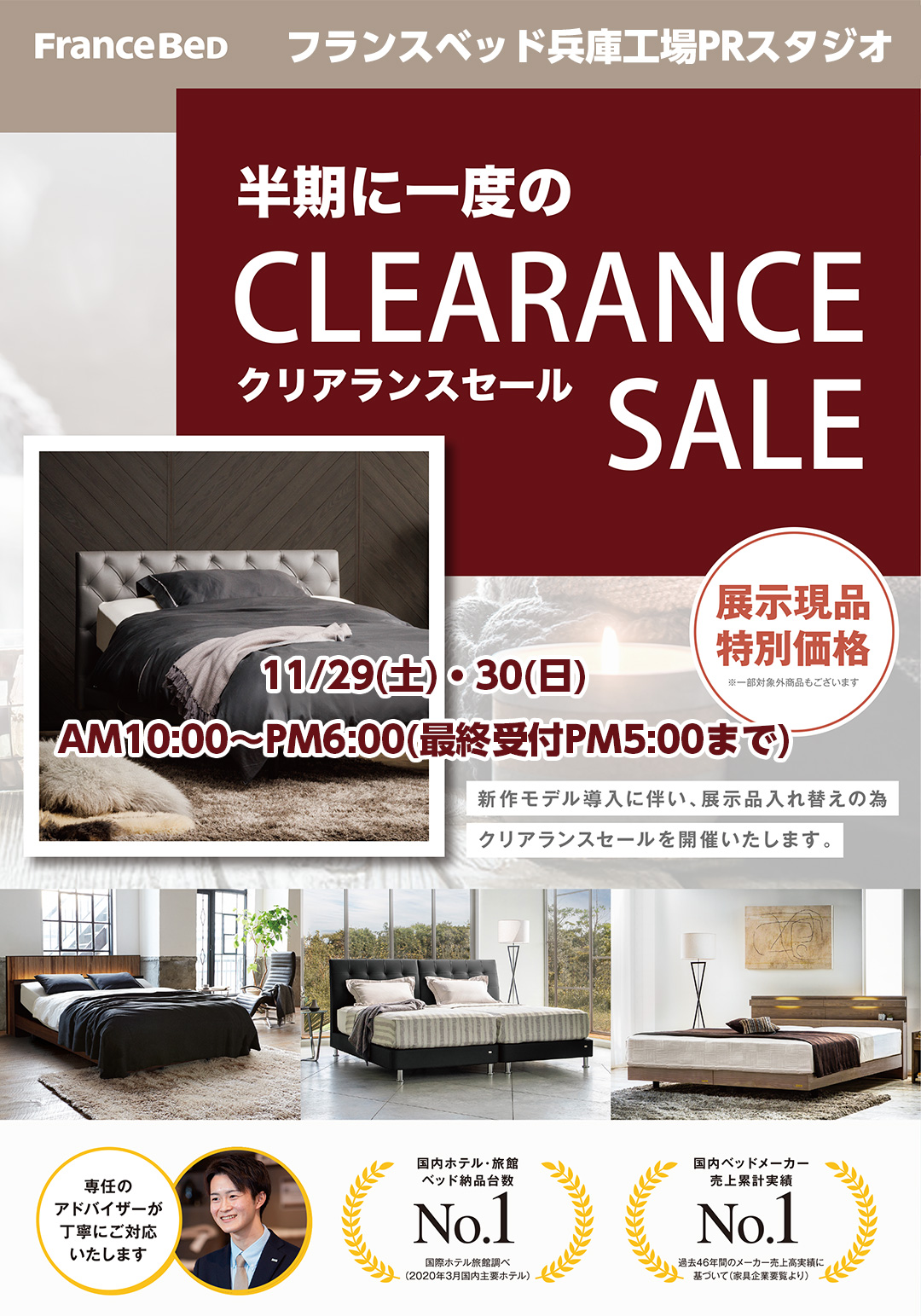 フランスベッド兵庫工場大開放・全館全品特別セール! 新作、展示現品も全商品、限定特別価格にて特別ご提供! |