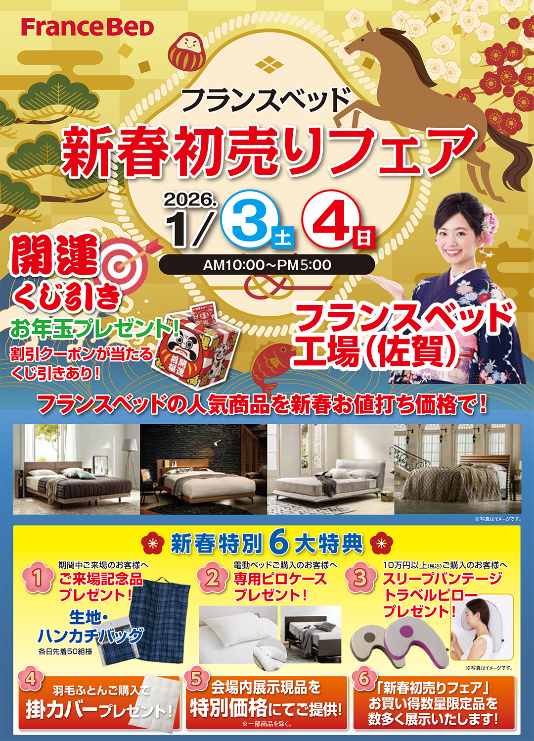 フランスベッド工場大開放スペシャルセール! 新作、展示現品も全商品、工場特別価格にてご提供! |