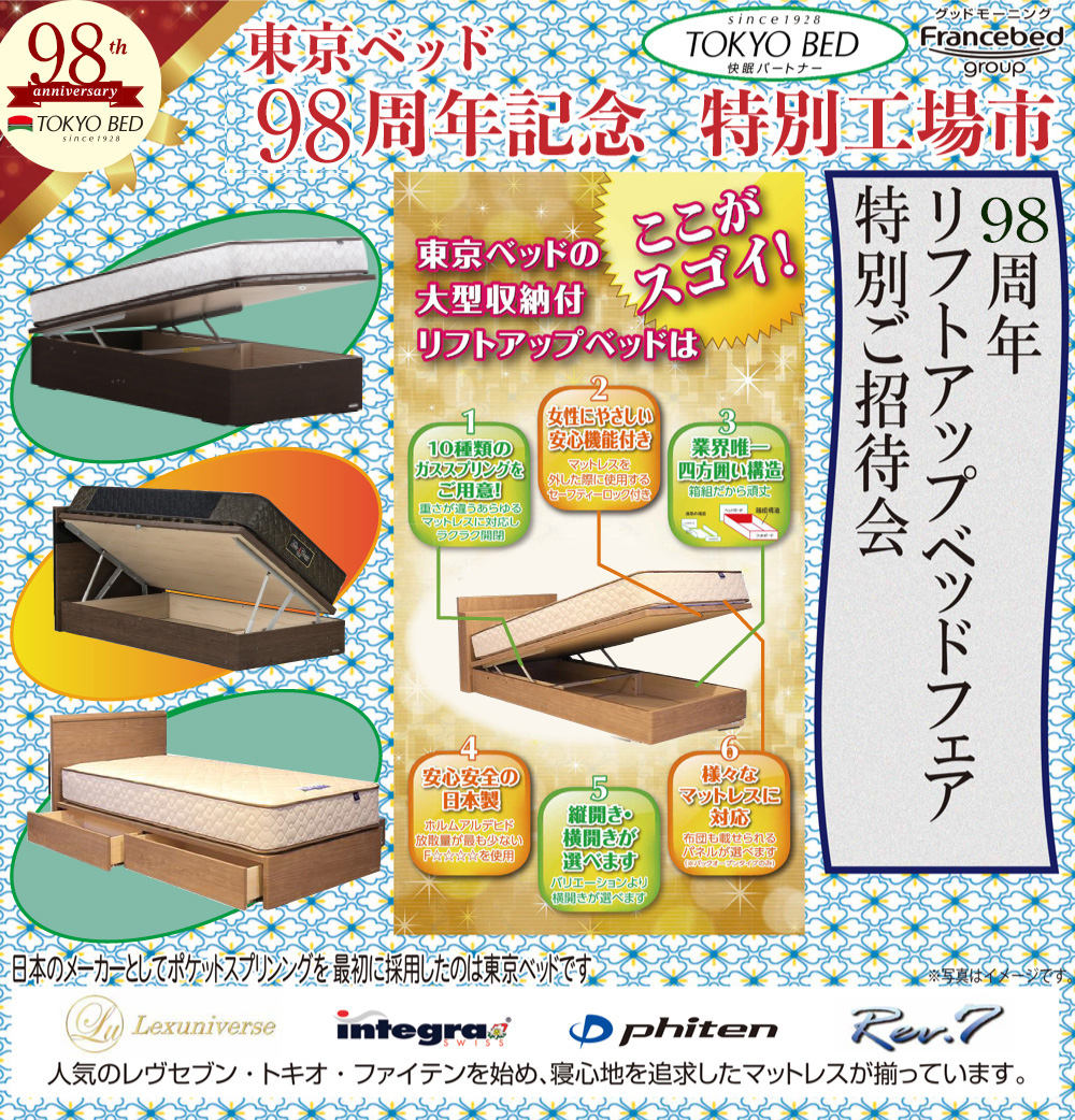 高品質べッドを、東京ベッドのバーゲン特別セールイベントならではの大特価でご提供! 展示品が無くてもご優待価格でご案内! |