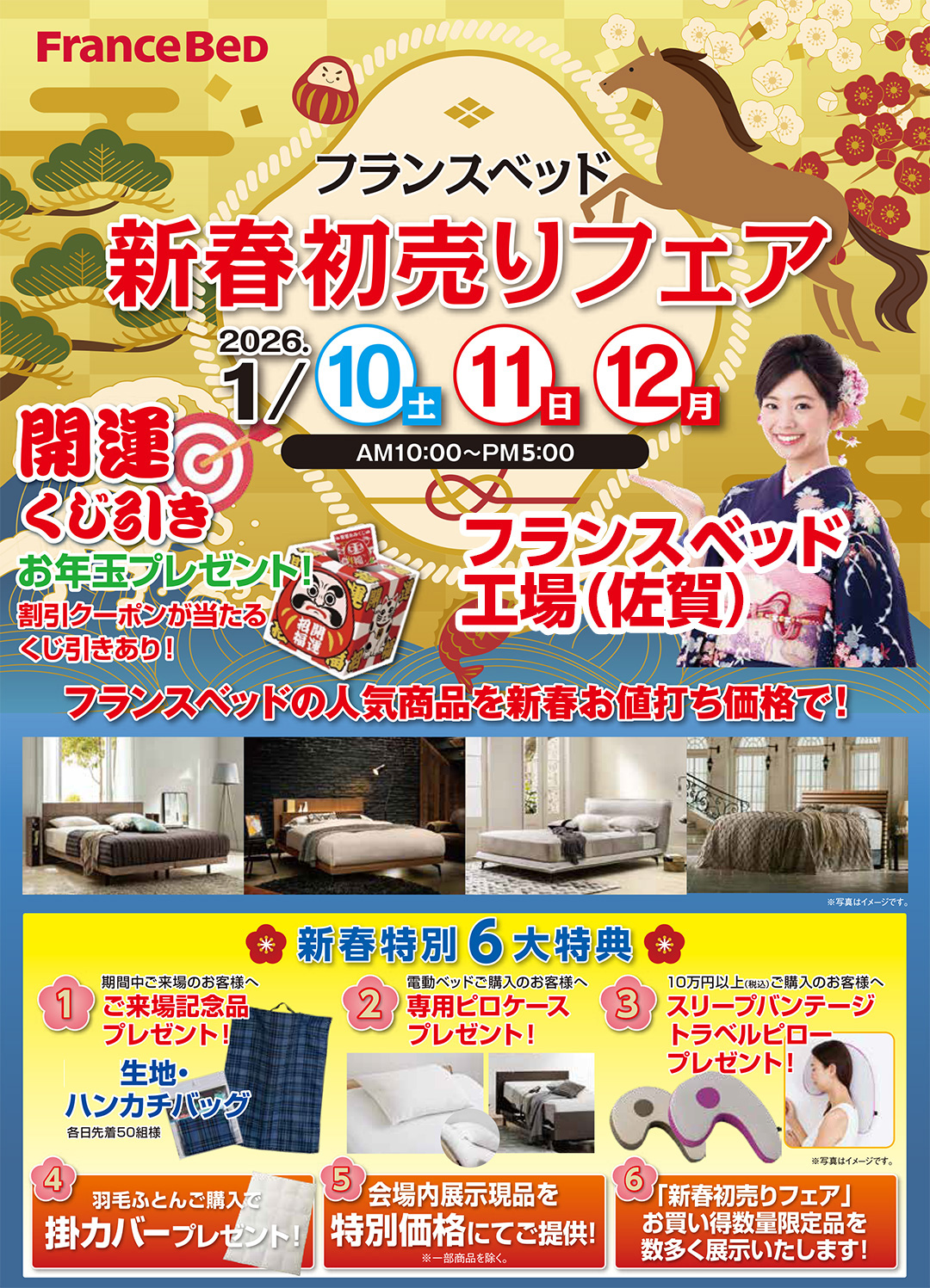 フランスベッド工場大開放スペシャルセール! 新作、展示現品も全商品、工場特別価格にてご提供! |