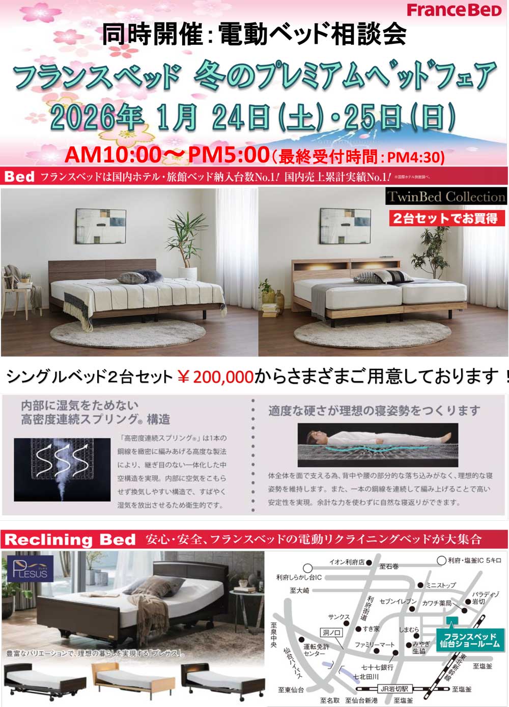 安心・安全・静音な【電動リクライニングベッド】も限定特別価格で充実品揃え! |