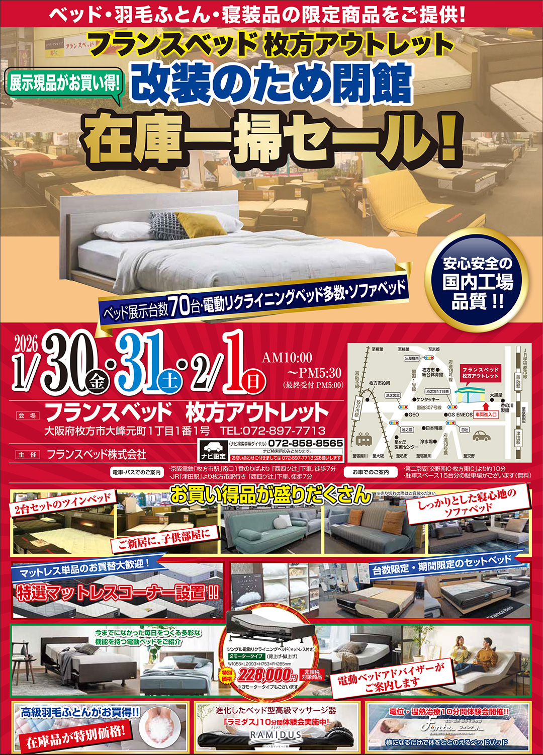 | 開催会場 | フランスベッド 枚方アウトレット |