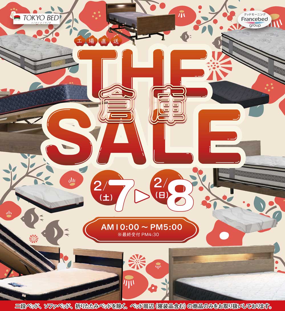 高品質ベッドを、東京ベッドの工場バーゲン特別イベントならではの大特価でご提供! 展示品が無くてもご優待価格でご案内! |