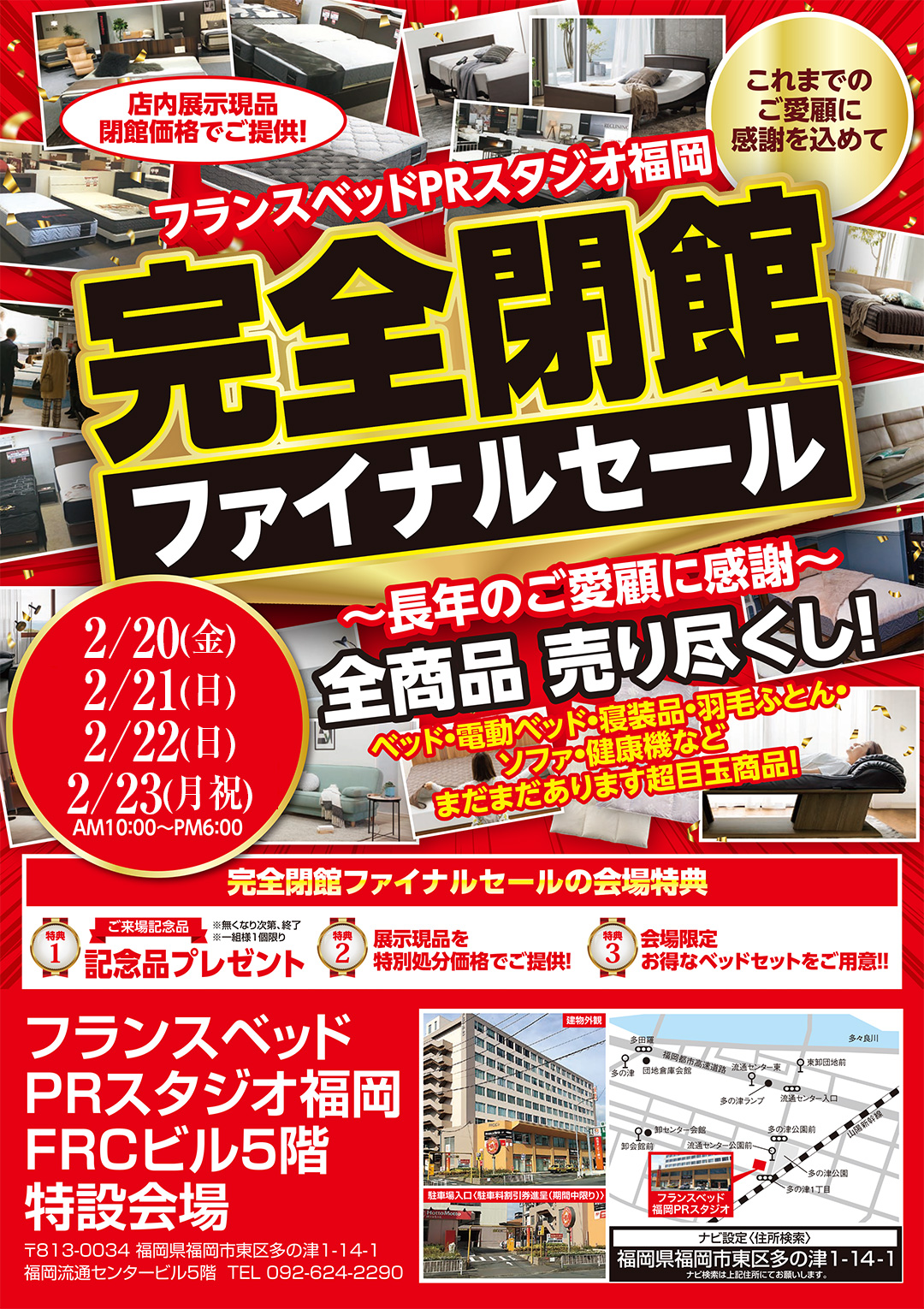 | 開催住所 | 〒813-0034 福岡県福岡市東区多の津1-14-1 福岡流通センタービル(FRCビル)5階 会場直通 092-624-2290 (開催期間中のみ) |