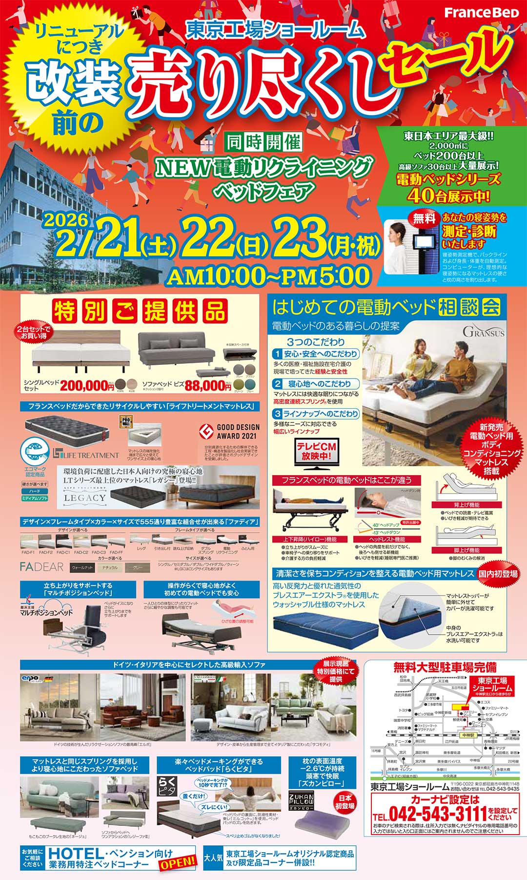 大人気!フランスベッド東京工場ショールーム認定商品、及び、限定品コーナー併設! |