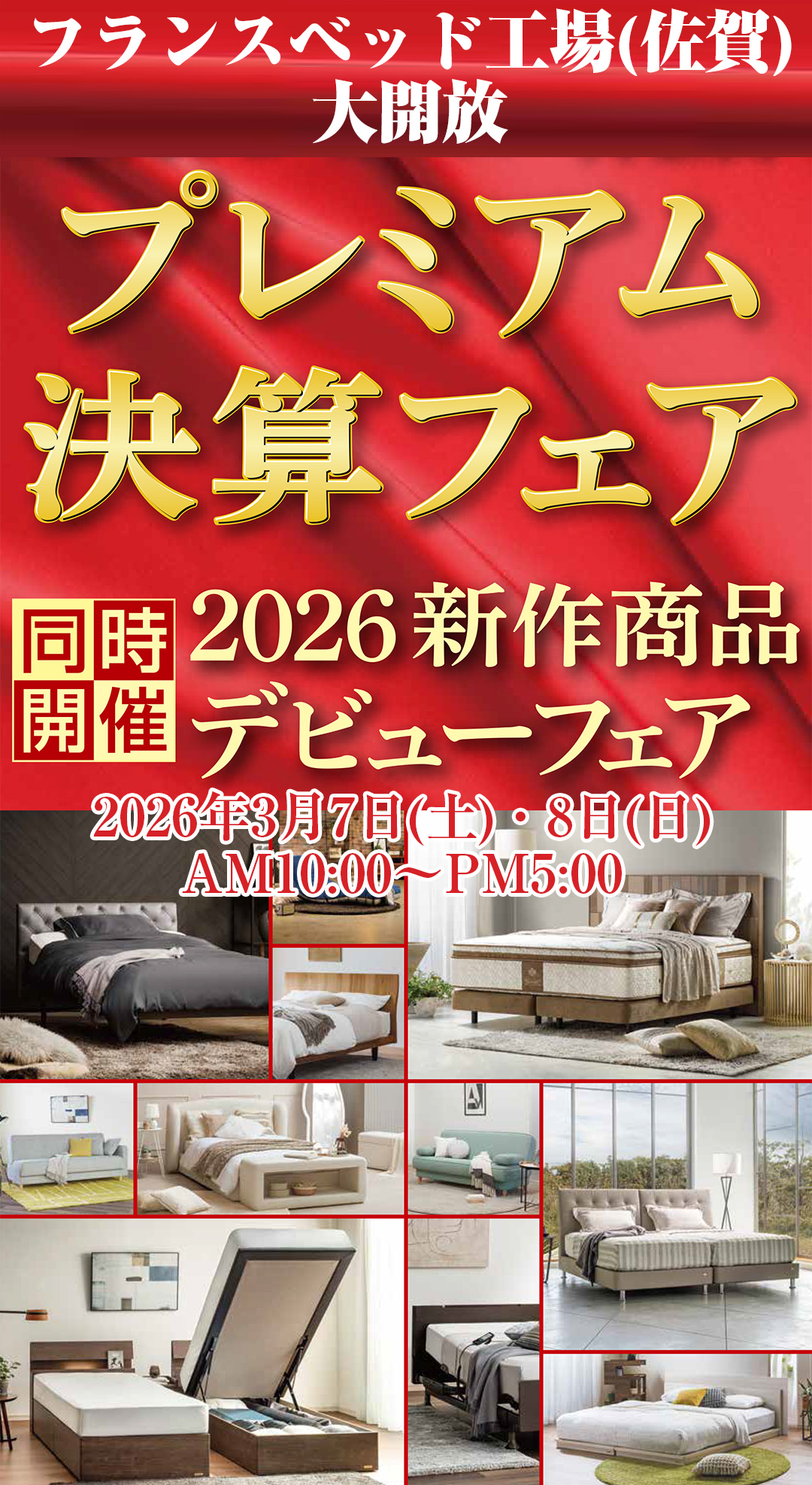 フランスベッド工場大開放スペシャルセール! 新作、展示現品も全商品、工場特別価格にてご提供! |