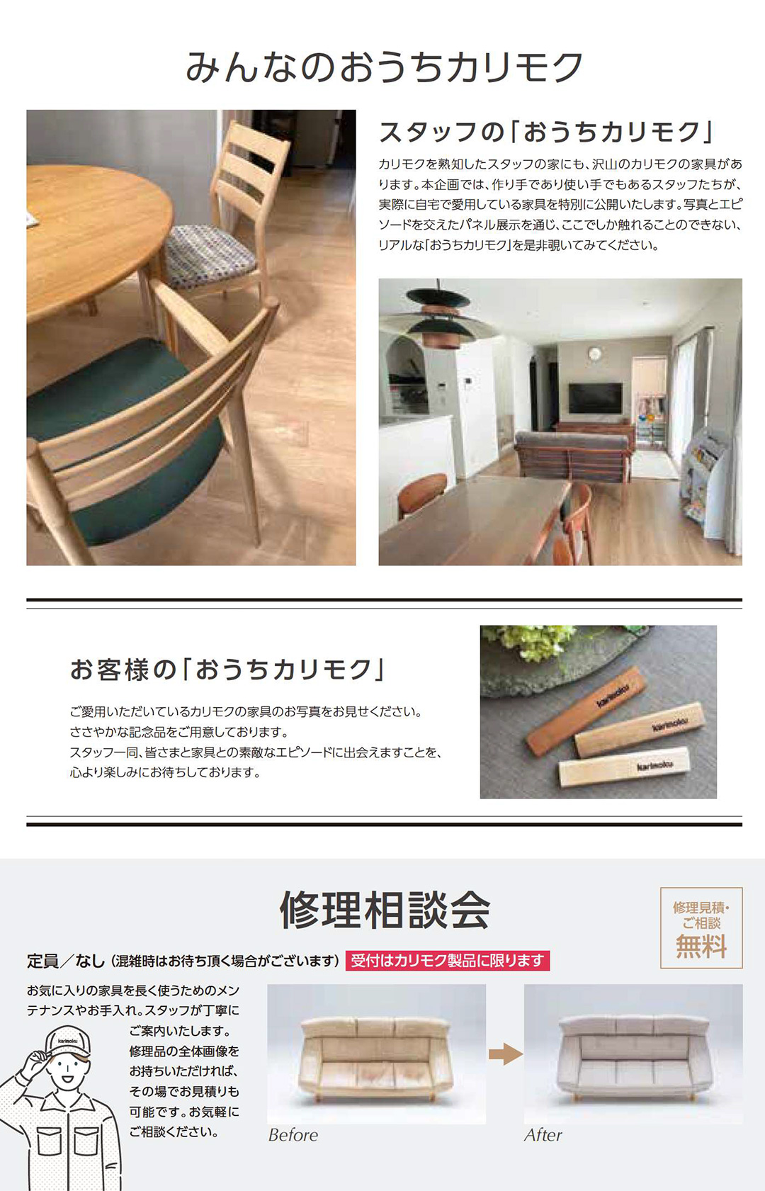 | 修理相談 | カリモク家具の修理ご相談もお受けできます。 |
