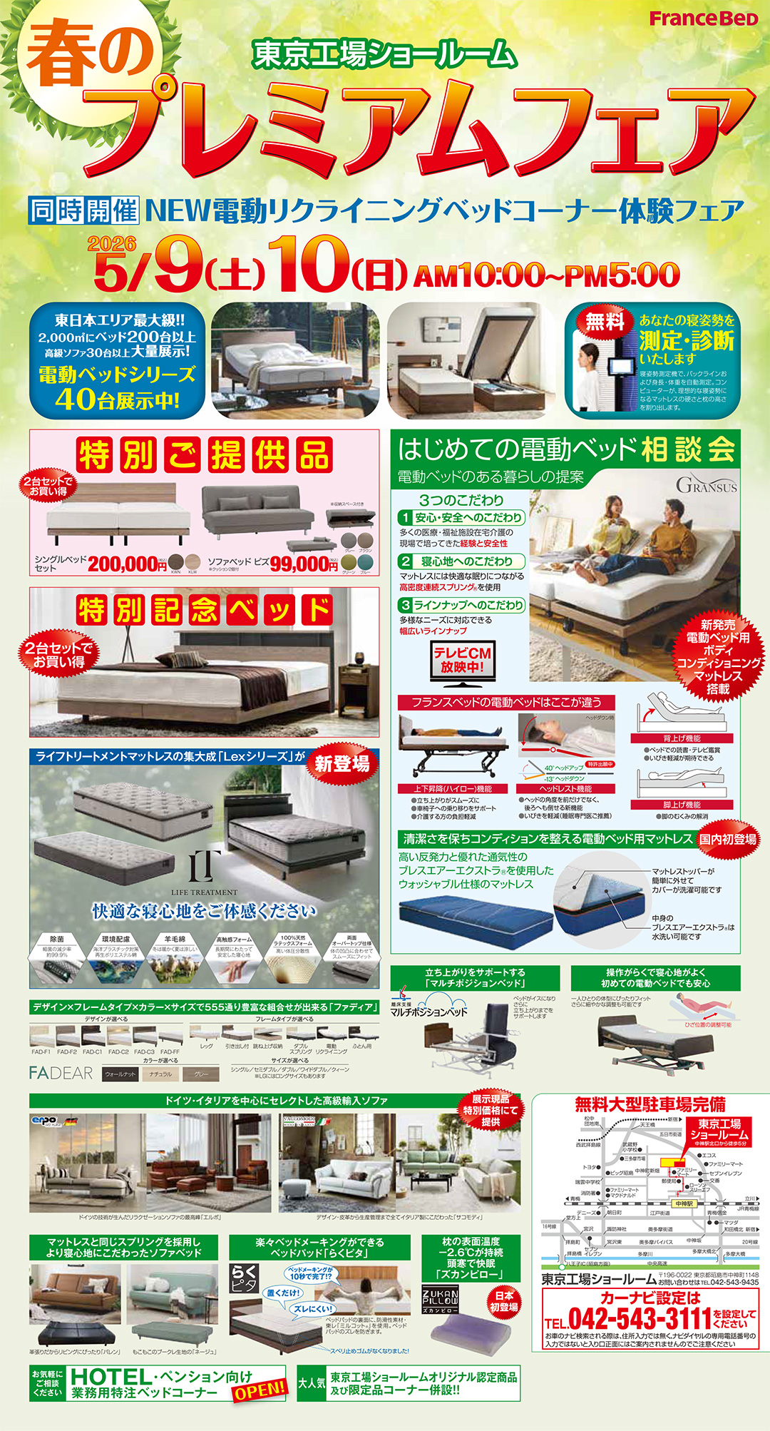 大人気!フランスベッド東京工場ショールーム認定商品、及び、限定品コーナー併設! |