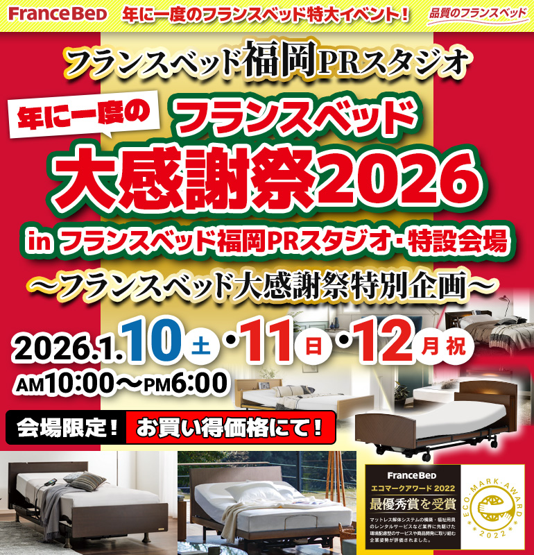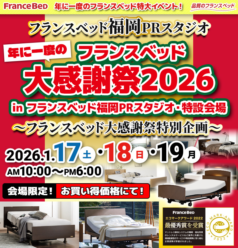 - 【年に一度のフランスベッド特大イベント!】 フランスベッド大感謝祭2026 inフランスベッド福岡PRスタジオ・特設会場