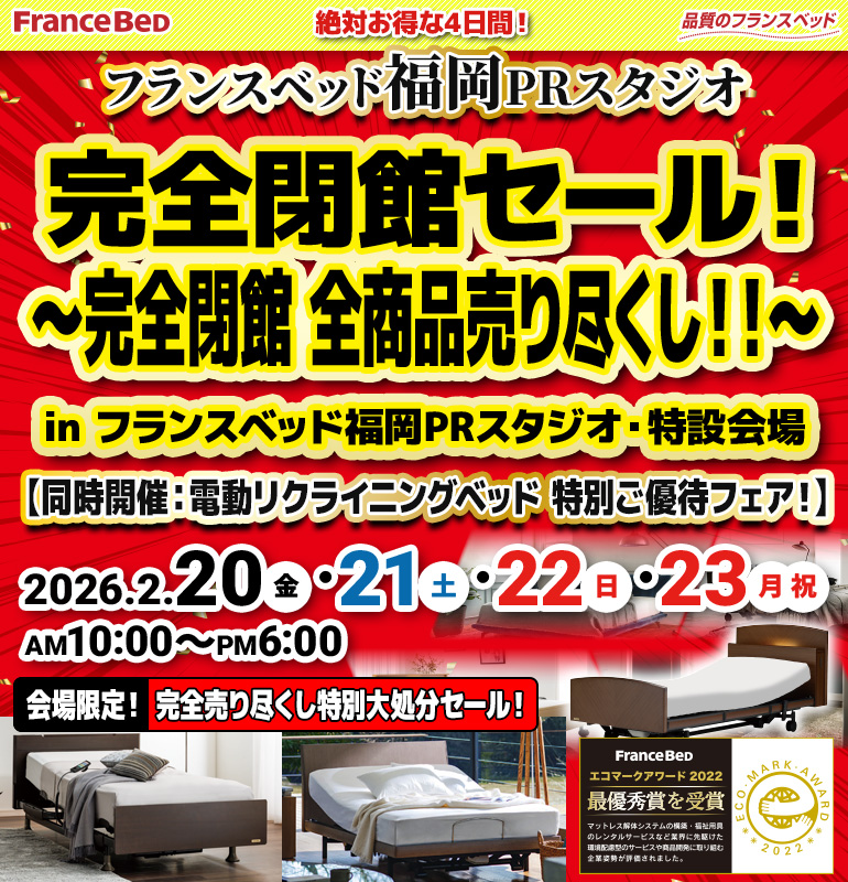 - フランスベッド福岡PRスタジオ 【完全閉館セール!】 ~完全閉館 全商品売り尽くし!!~