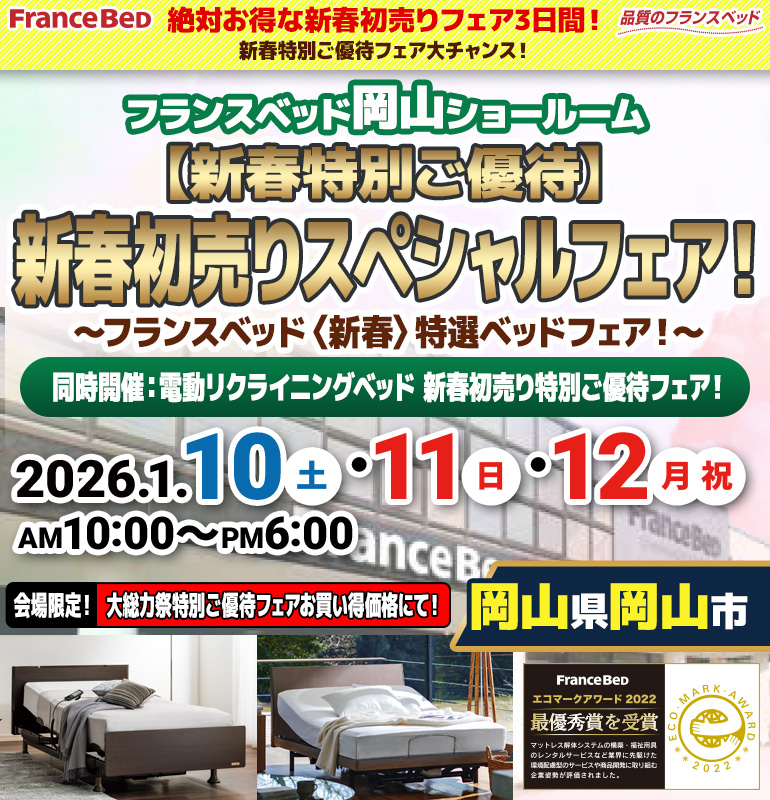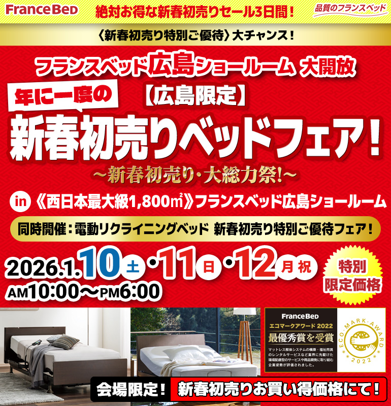 - <<年に一度の>> フランスベッド広島ショールーム 【広島限定】<新春初売りベッドフェア!>