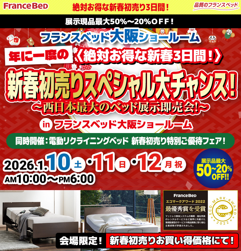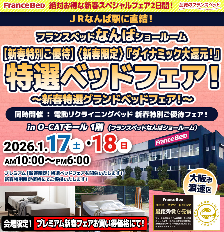 - フランスベッドなんばショールーム【新春特別ご優待】 <新春限定>『ダイナミック大還元!』特選ベッドフェア!