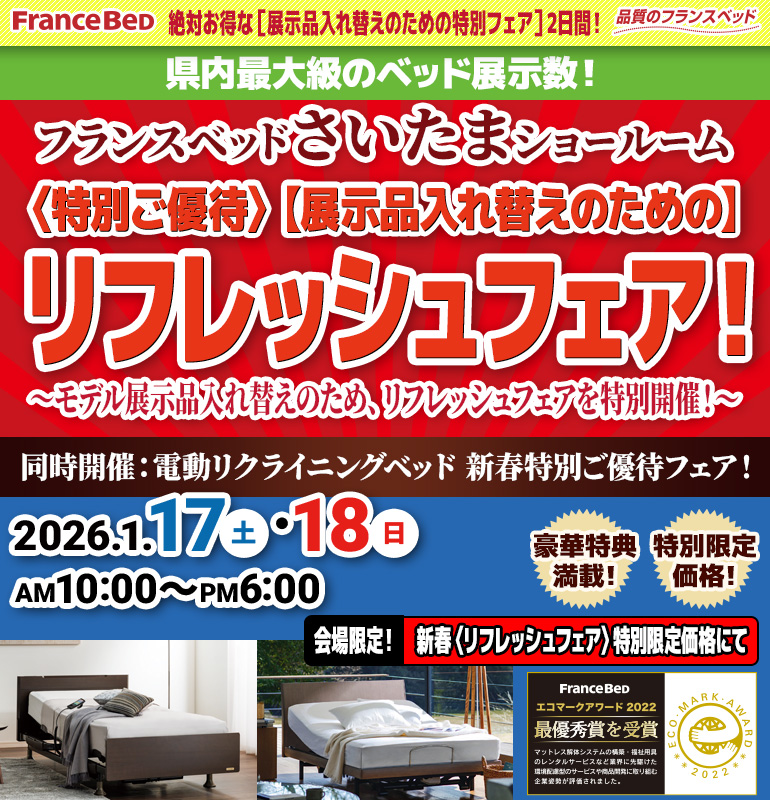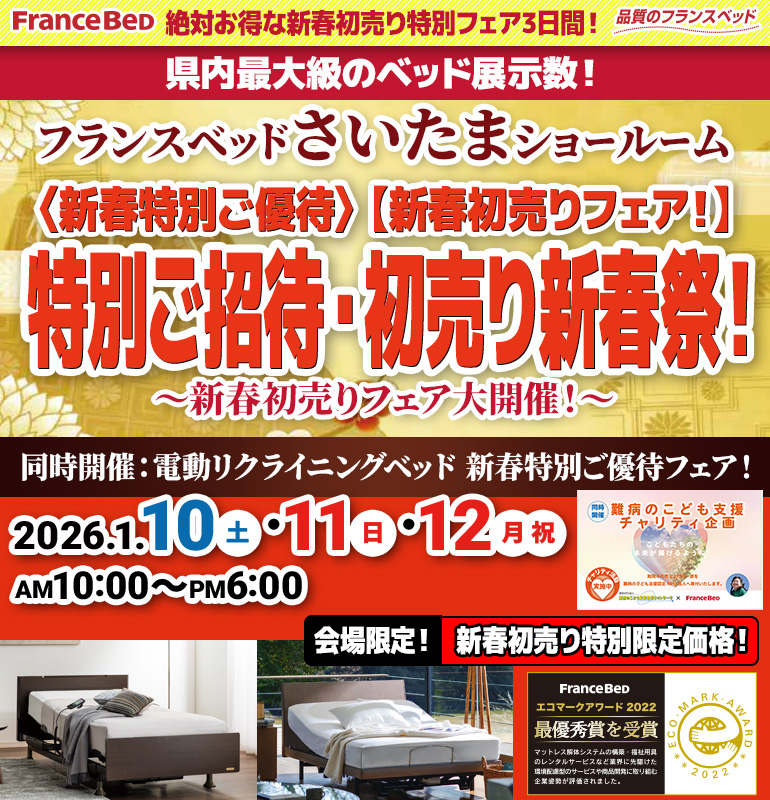- フランスベッドさいたまショールーム<新春特別ご優待> 【新春初売りフェア!】特別ご招待・初売り新春祭!