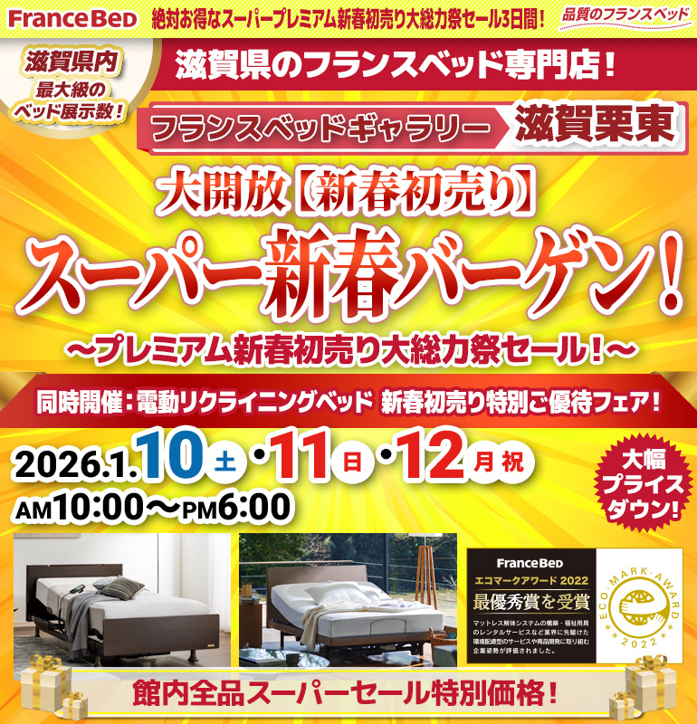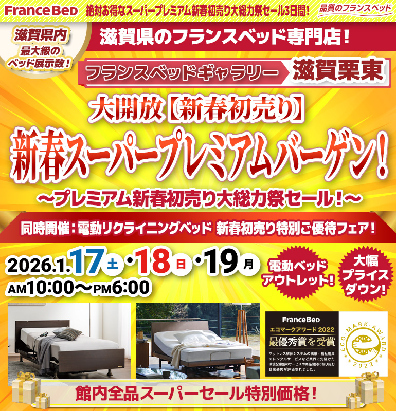 - フランスベッドギャラリー滋賀栗東 大開放 【新春初売り】新春スーパープレミアムバーゲン!