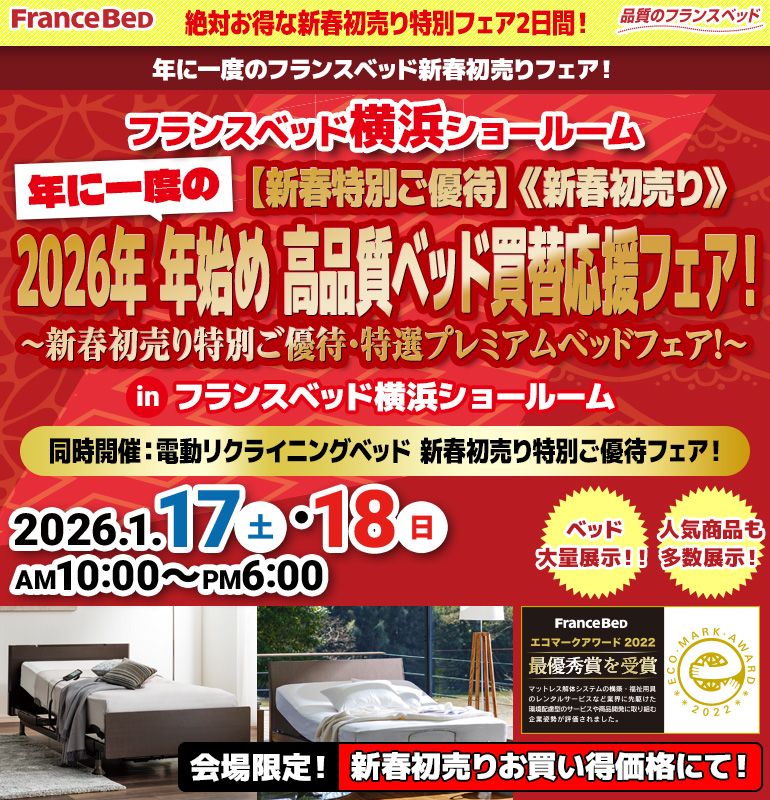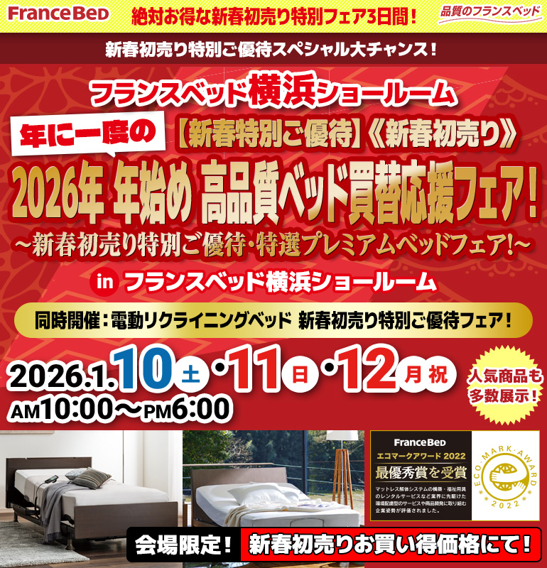 - フランスベッド横浜ショールーム【新春特別ご優待】 <<新春初売り>>2026年 年始め 高品質ベッド買替応援フェア!